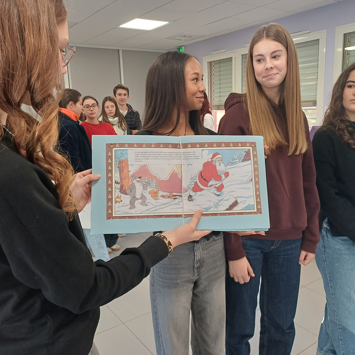 Une fois par semaine, des élèves de Seconde 1 ont imaginé, rédigé puis mis en voix de petits contes de Noël spécialement destinés aux enfants de petite section.