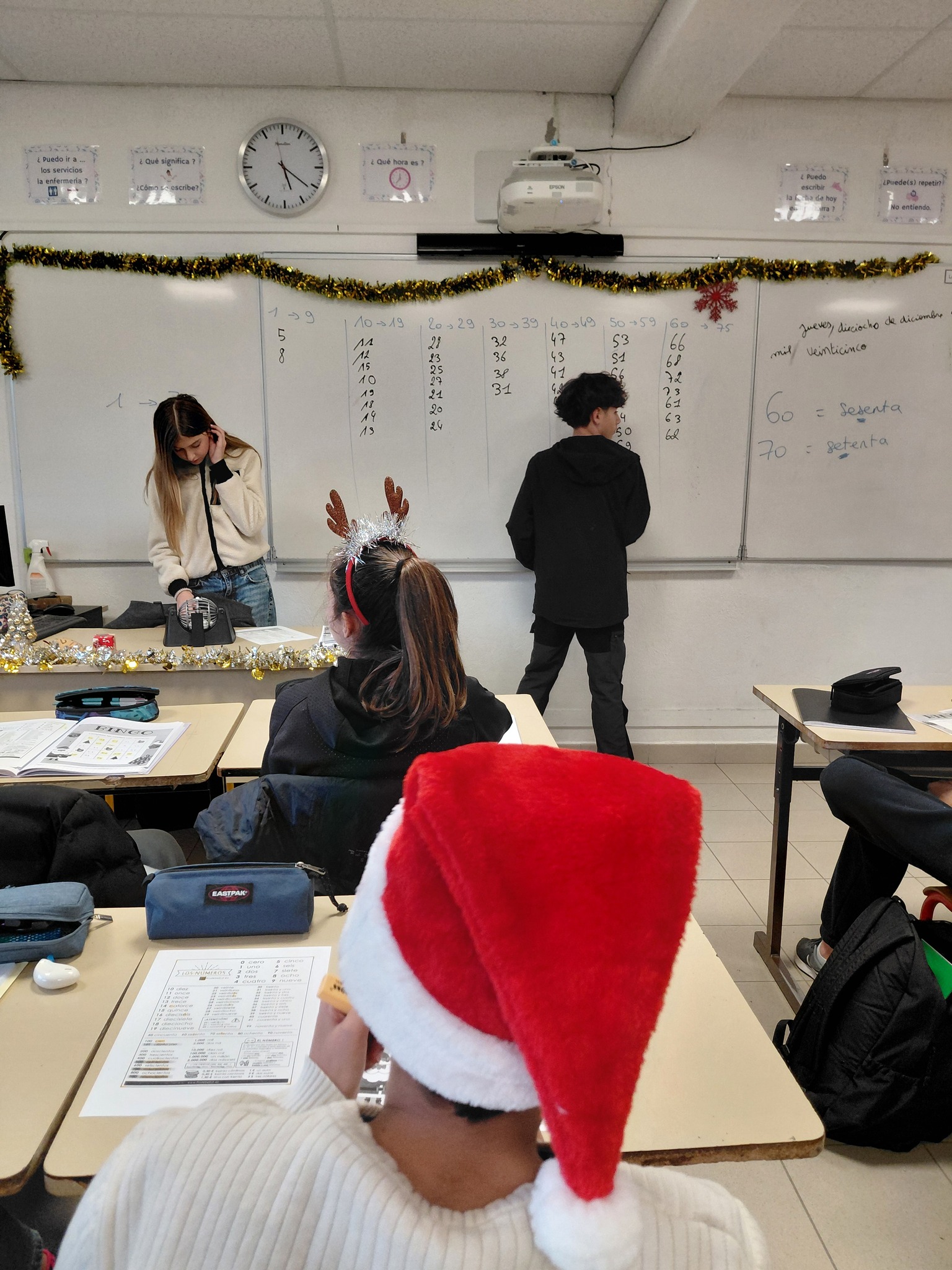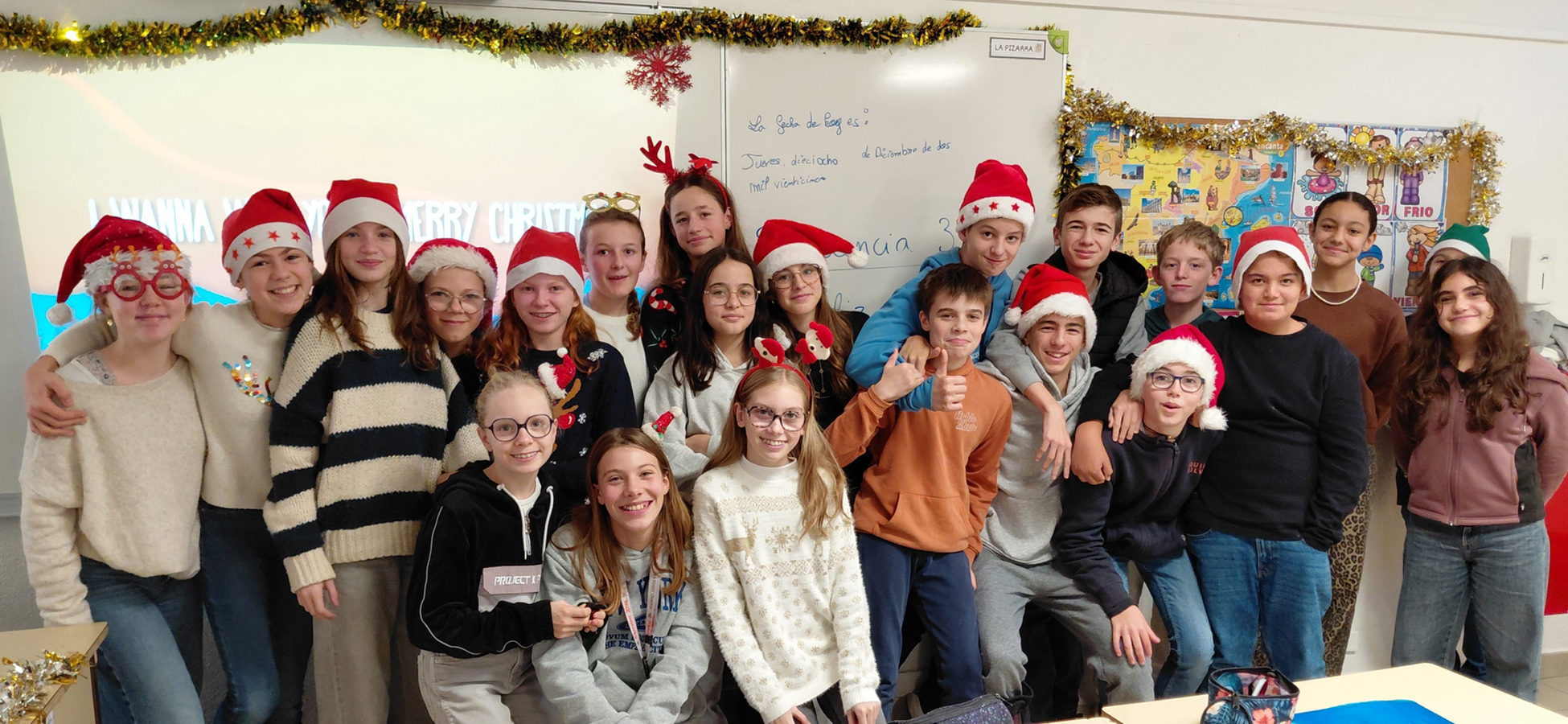 Au collège, les élèves de 5ème1, 5ème7 et 4ème3 ont célébré Noël en cours d’espagnol par des chants de Noël et une loterie.