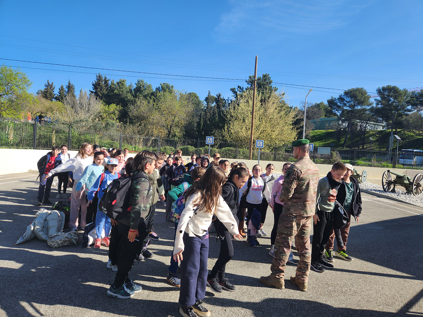 Le mardi 17 mars, les élèves de CM2 ont eu la chance de vivre une sortie scolaire exceptionnelle au 1er Régiment étranger d’Aubagne. Accompagnés de leurs enseignantes, les deux classes ont partagé une journée riche en découvertes et en émotions.