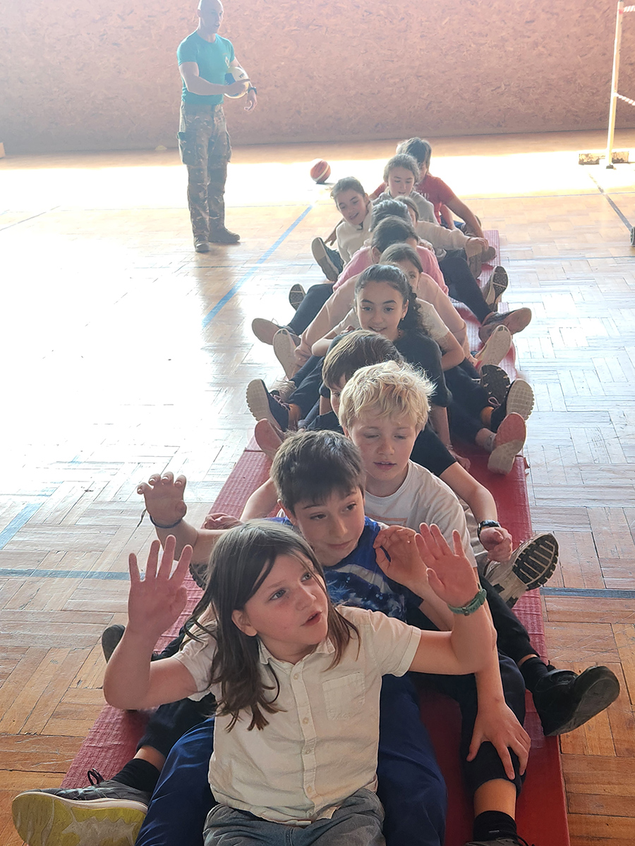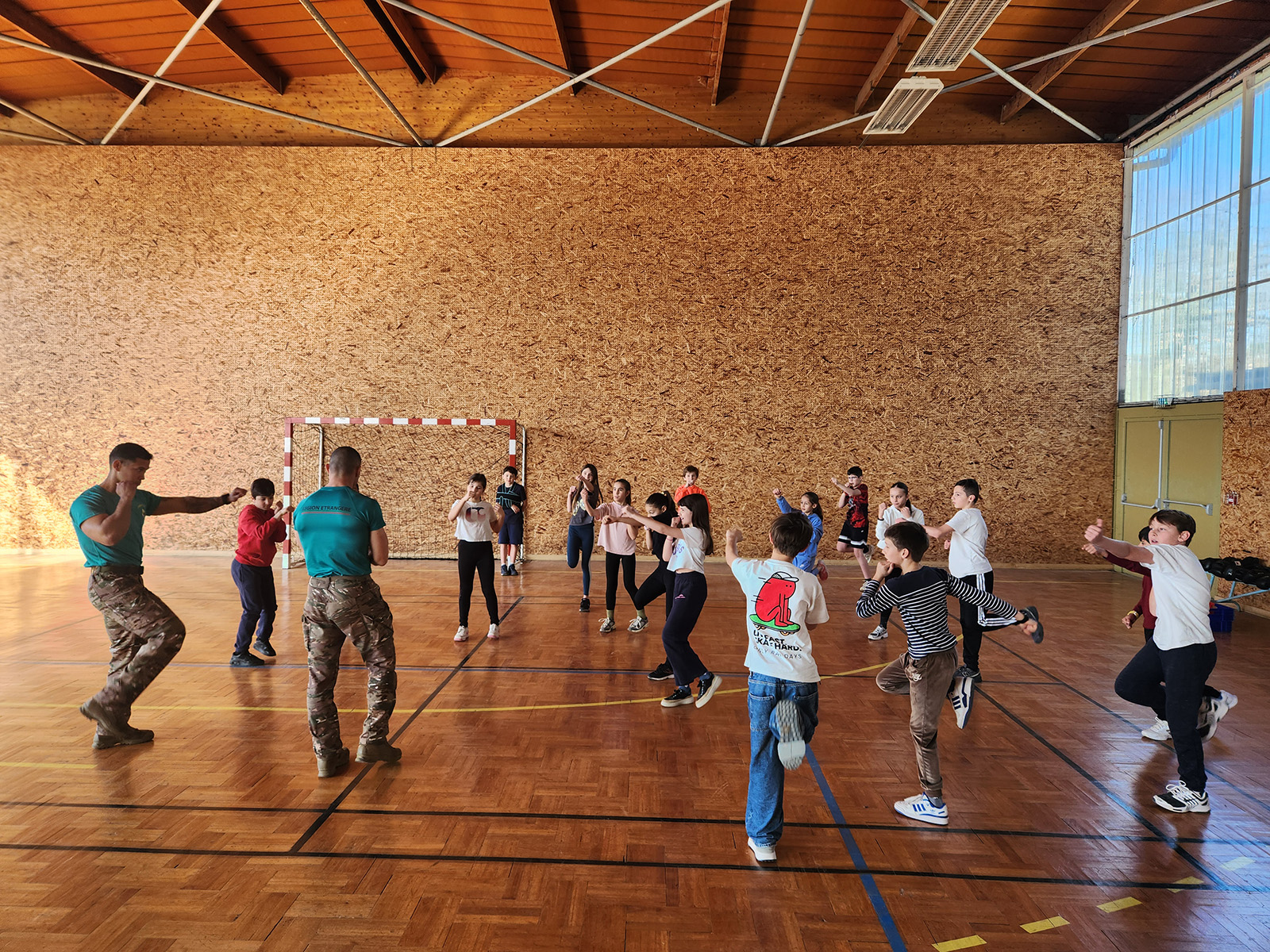 L’après-midi, place à l’action ! Les élèves ont participé à des activités sportives encadrées par des militaires. Ils ont notamment été initiés aux techniques de MMA avec le major Gérald, une expérience impressionnante et très appréciée. Ensuite, ils se sont lancés dans un parcours de training inspiré du parcours du combattant, mettant à l’épreuve leur agilité, leur endurance et leur esprit d’équipe.