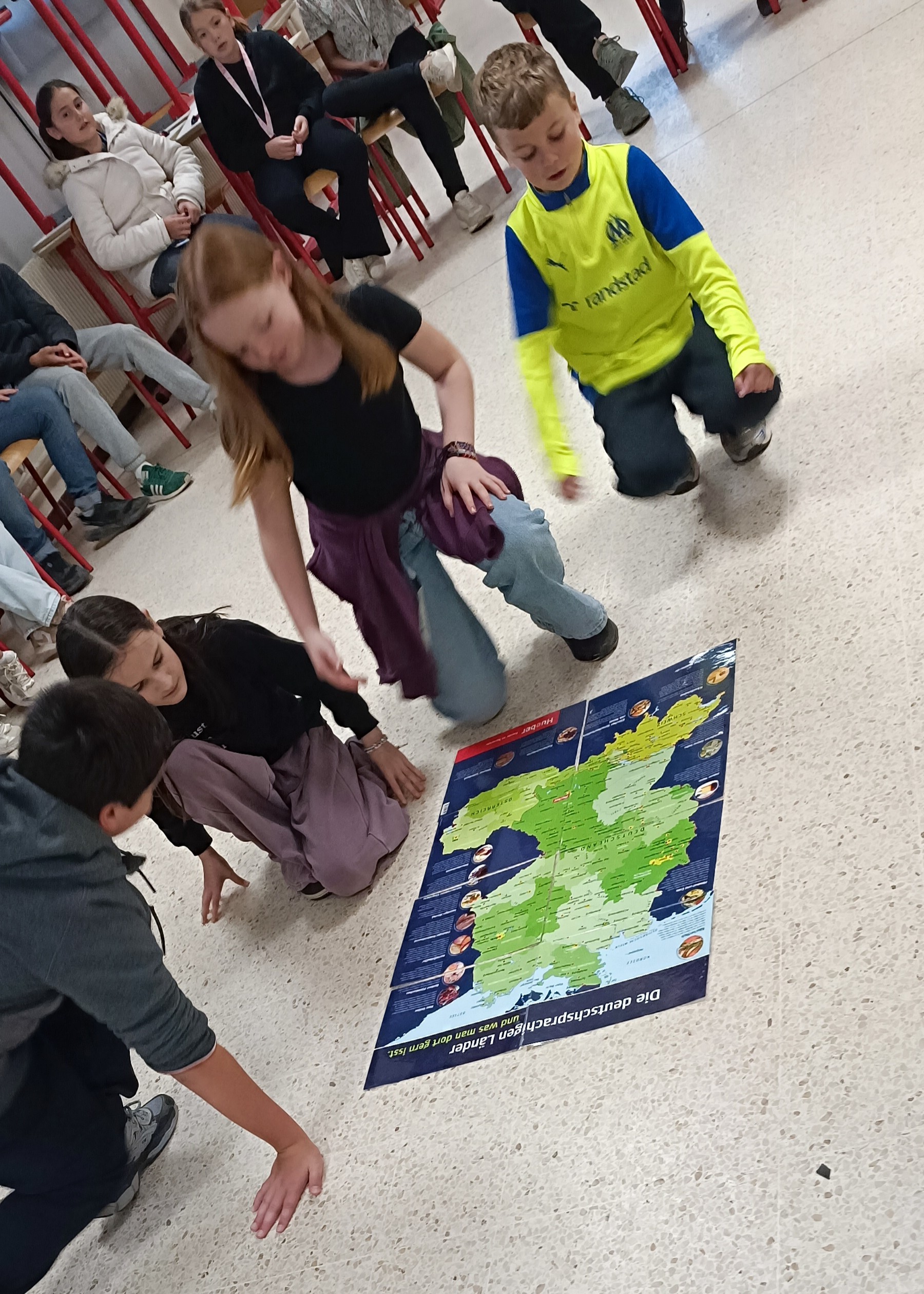 Chaque classe a pu échanger en allemand, à l’aide de supports visuels, pendant une heure, avec notre intervenante à travers diverses activités ludiques, jeux linguistiques, quiz culturels et échanges dynamiques.