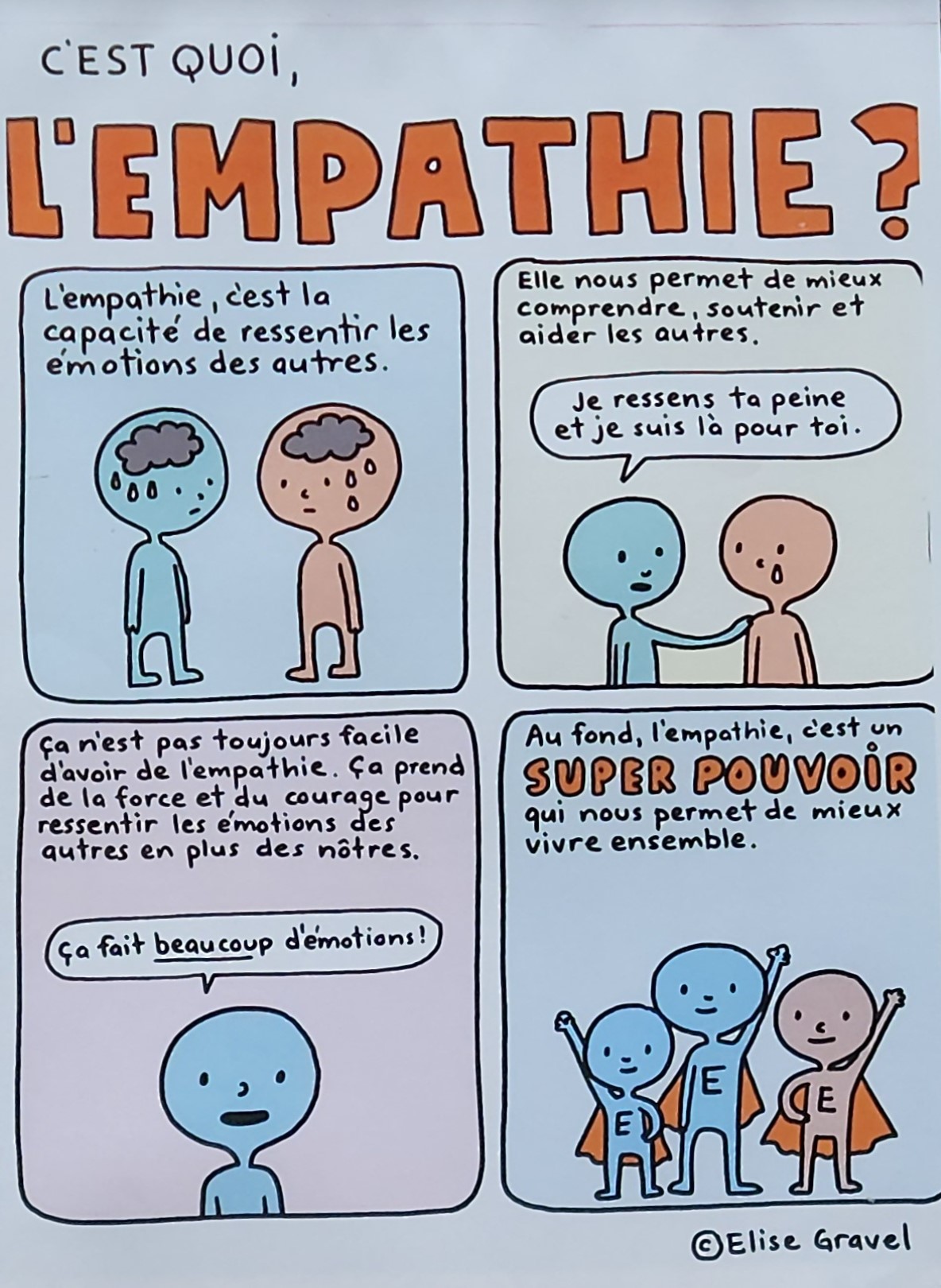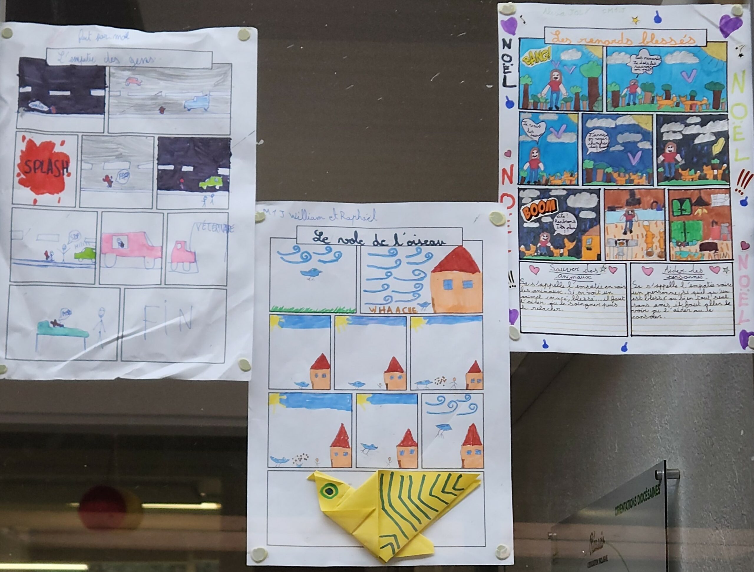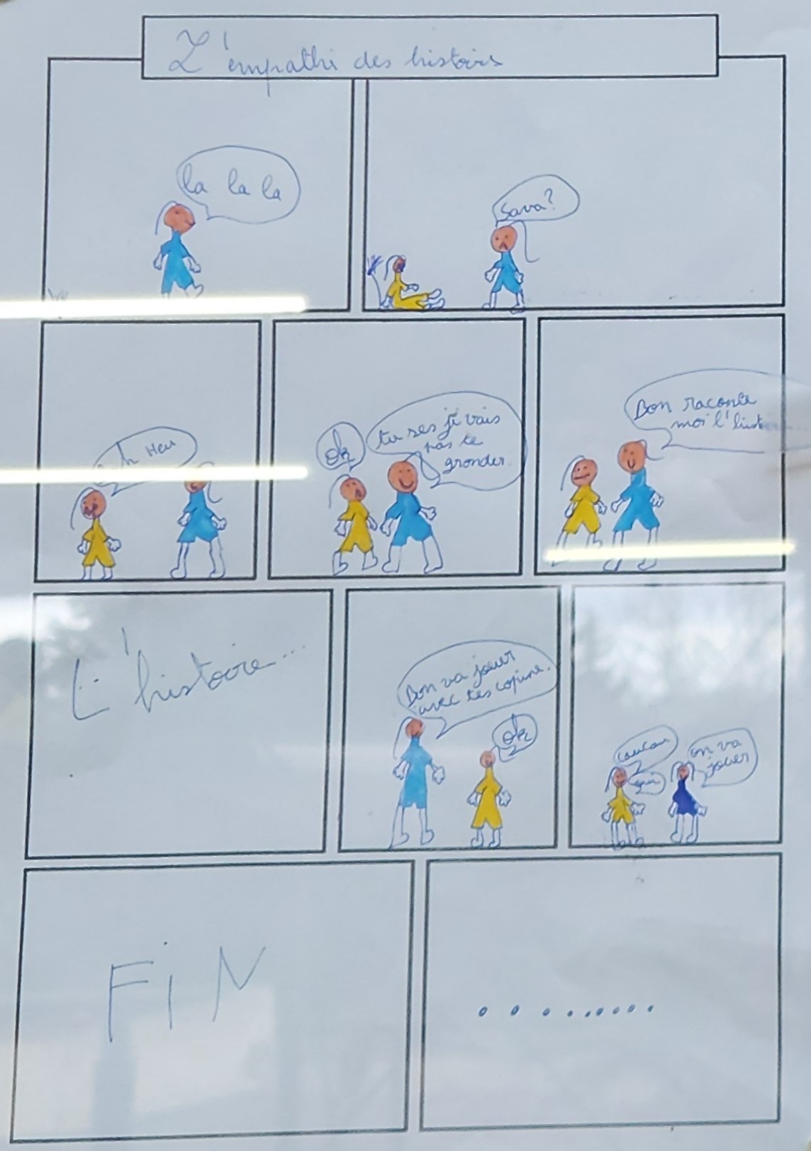 Les CM1 et CM2 par le biais d’une bande dessinée, les CP CE1 et CE2 par l’élaboration d’une boule de l’empathie. Leurs travaux ont été affichés sous les préaux.