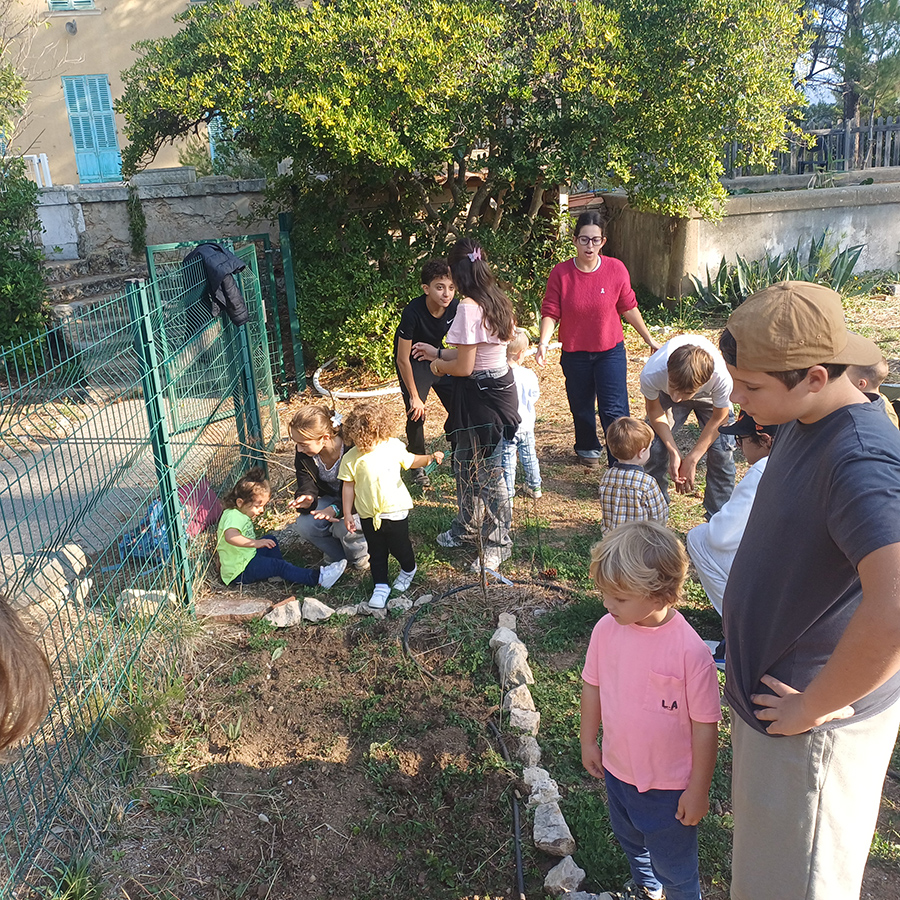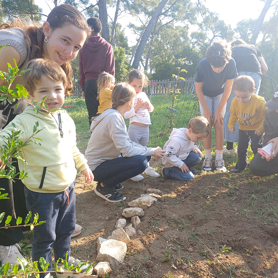 Plantation, apprentissage et coopération en intercycles pour prendre soin de son école et de son environnement.
