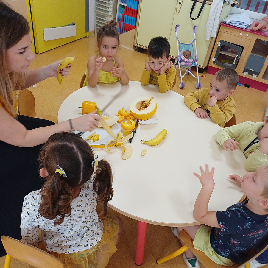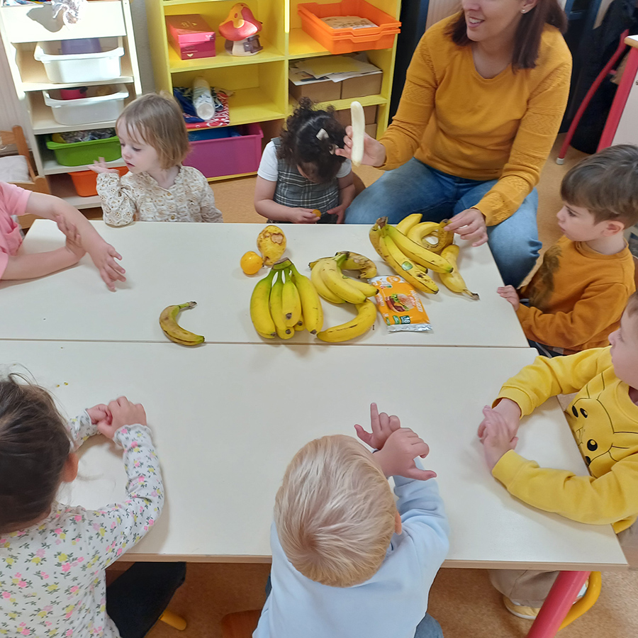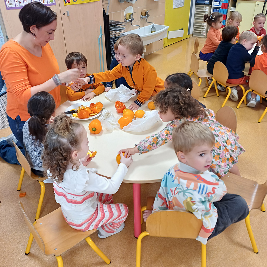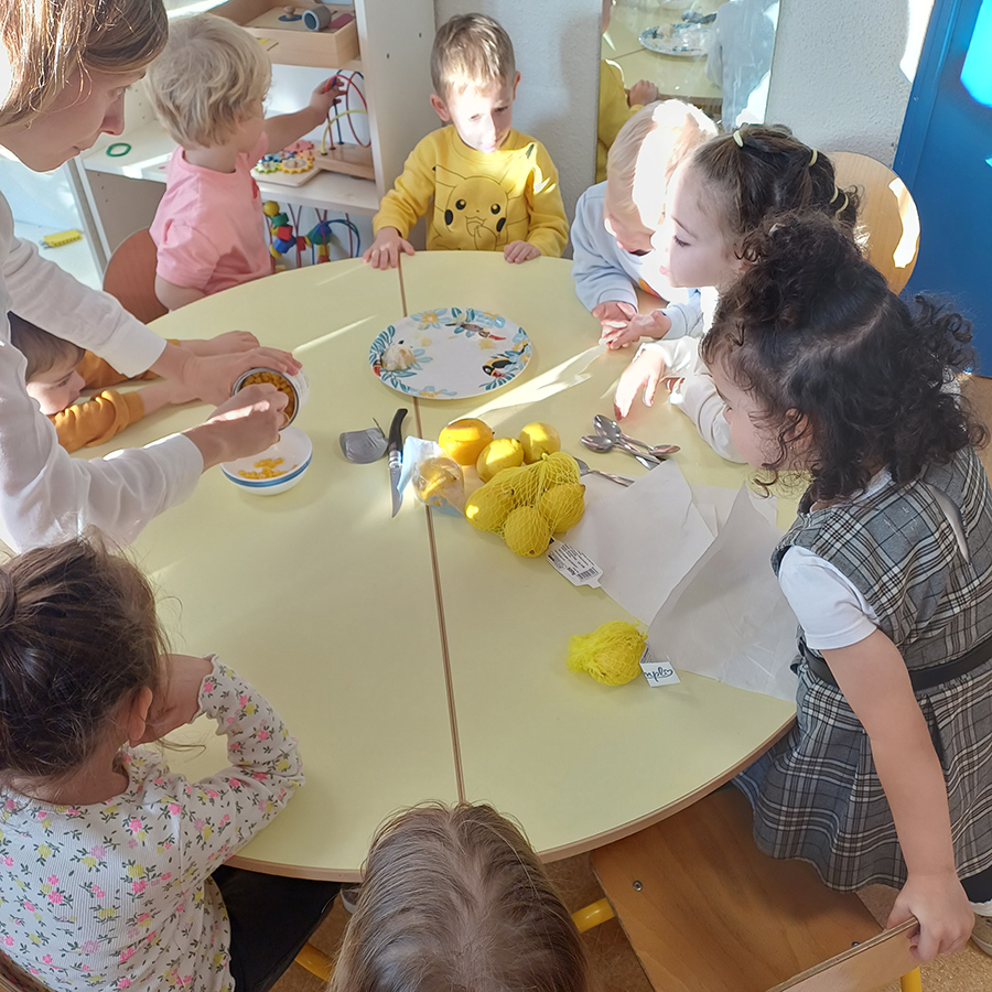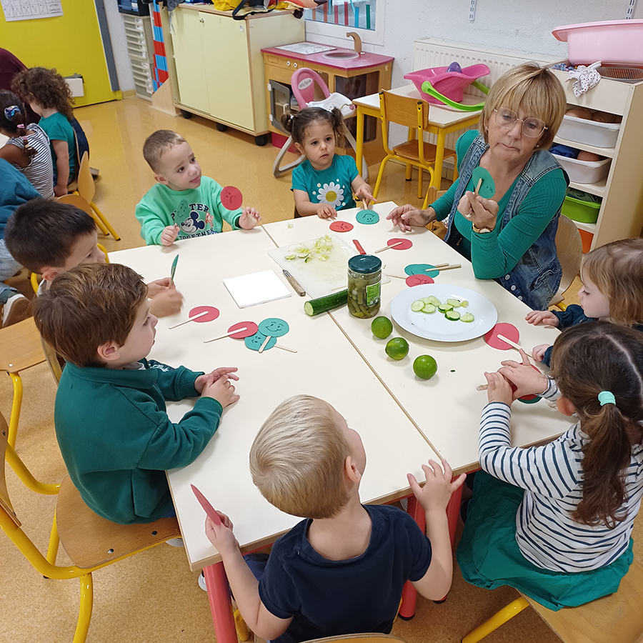 Découvertes culinaires pour les élèves de la maternelle en Petite Section Jaune à l’occasion de la Semaine du goût.