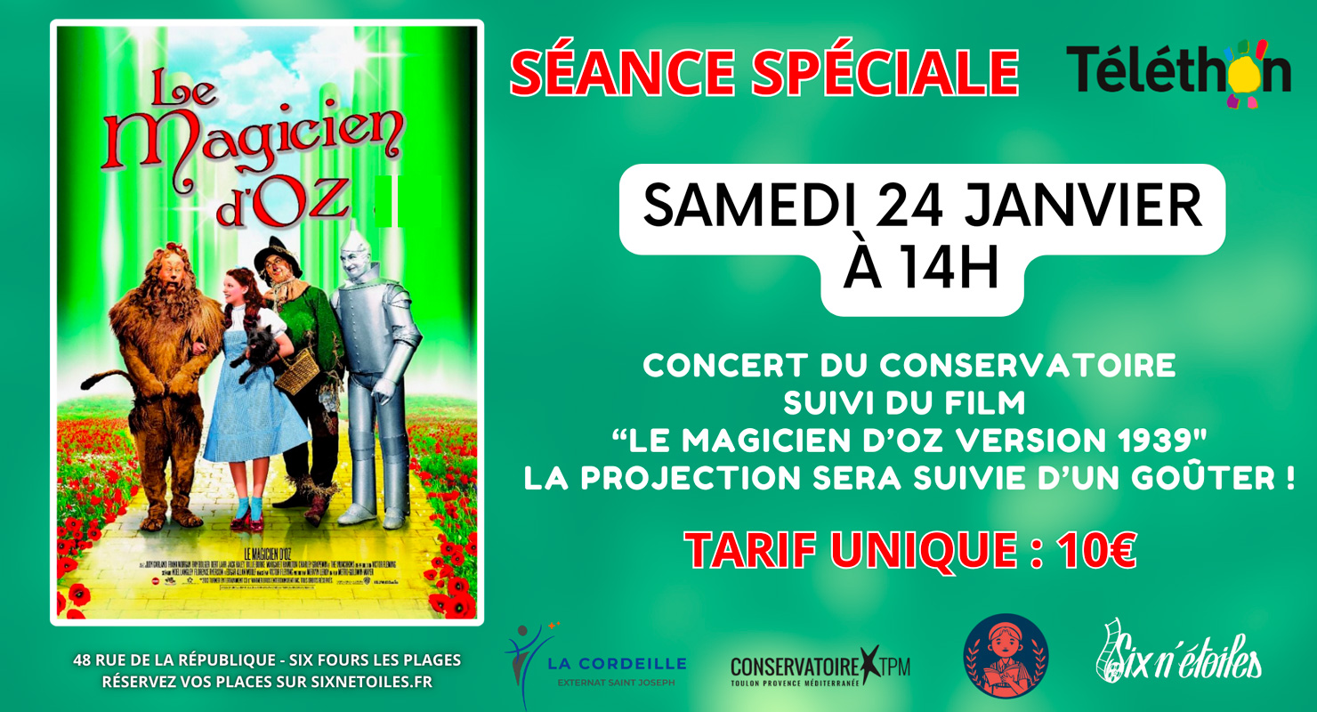 Comme chaque année, les élèves des classes cinéma ont participé au Téléthon organisé par Dany Cayol en préparant un délicieux goûter pour la projection du « Magicien d’Oz » et le concert des élèves du Conservatoire au cinéma Six n’étoiles le samedi 24 janvier.